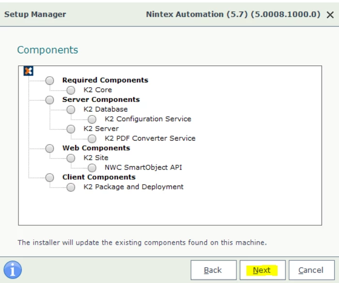 Attempting to perform an upgrade, but the Next button on Setup Manager is not responding to clicks. All prerequisites have been met and no warnings or errors are shown on Setup Manager.