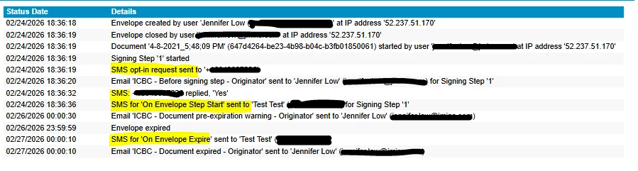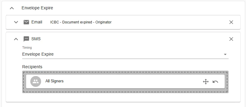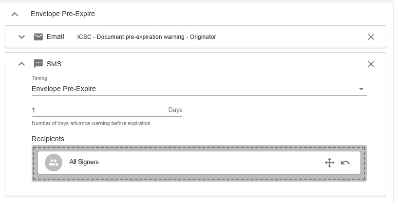 In AssureSign, is there a setting for envelope expiry notifications to be sent to the signer when an envelope was sent via SMS?