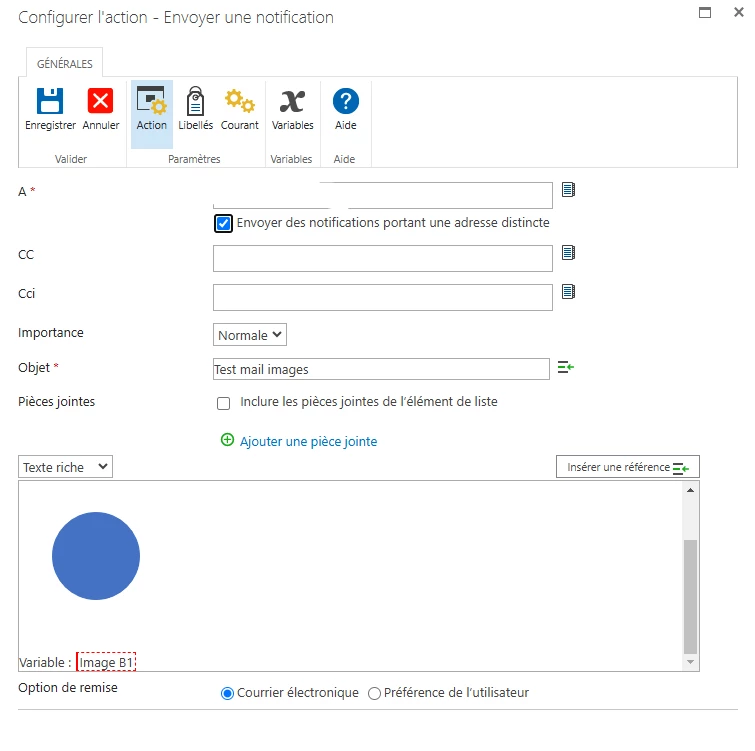 Now, all you need to do is add the variable (Image HTML in this example) to your email body:
