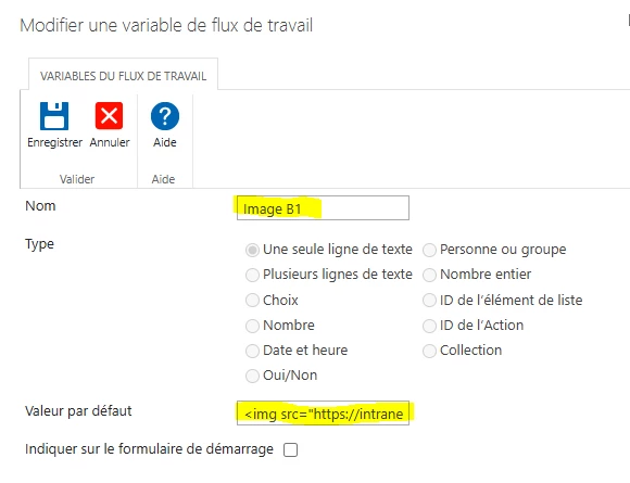 The action you're going to need to use is "Set a Variable Value". You'll then copy and paste the HTML code above, and update the URL with the one for the image you want to use.