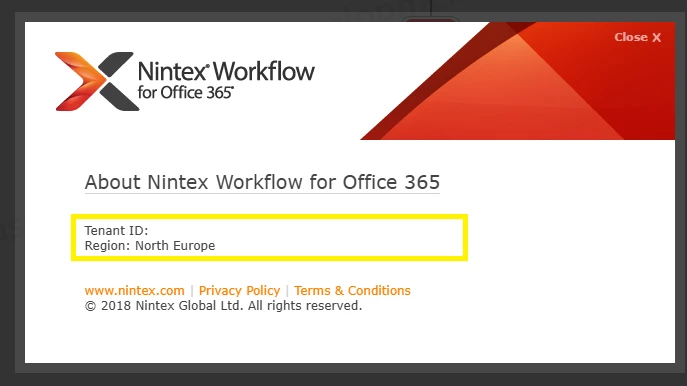 As part of obtaining a license for Nintex Workflow and Forms for Office 365 you (or your customer) will have to provide Nintex with the Office 365 tenant ID. There is two options to find the tenant ID: