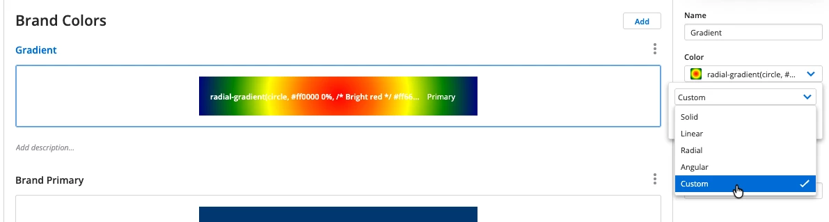 - Paste the gradient CSS into color input.
