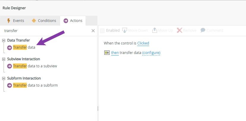 Add an Action → Transfer Data.