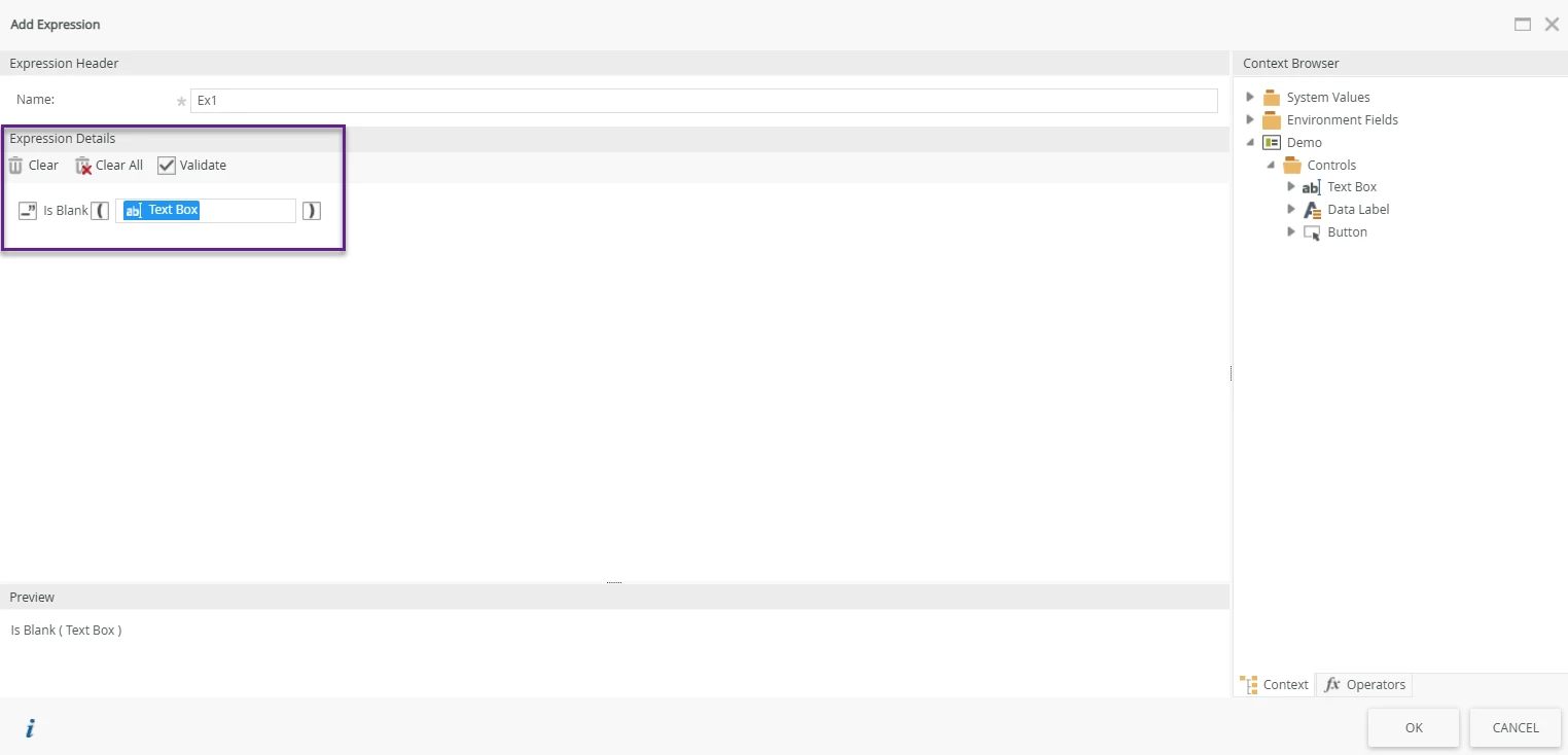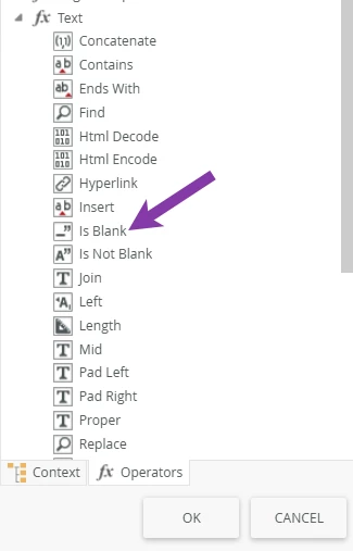 - Create an expression to check whether the text box is blank.