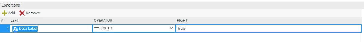 Condition: Data Label equals True