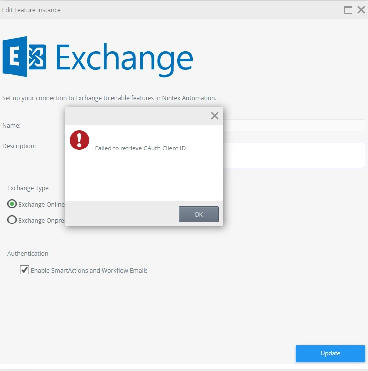 I added description, have the correct email address, added the domain, then click Update and then this error pops up. Any ideas?