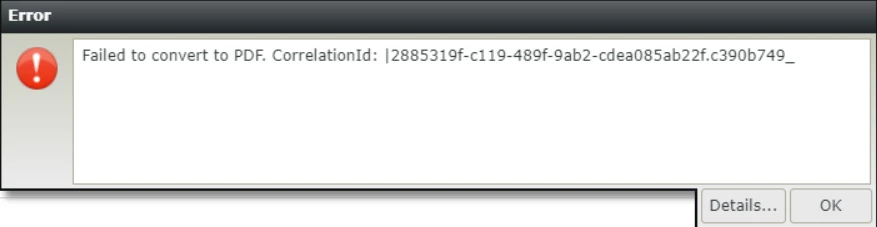 Failed to convert to PDF. CorrelationId: {CorrelationIdValue}