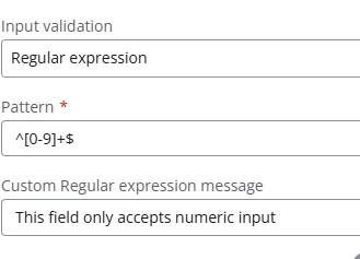 So I’m using Nintex Responsive forms. I am using a text field but numbers will be the only thing entered in. A user that uses this form continues to input text, so I went ahead and applied a regular expression (as you suggested) which provides a message (to only input numbers) but how do you stop the user from moving forward and past that field as it only provides a message?