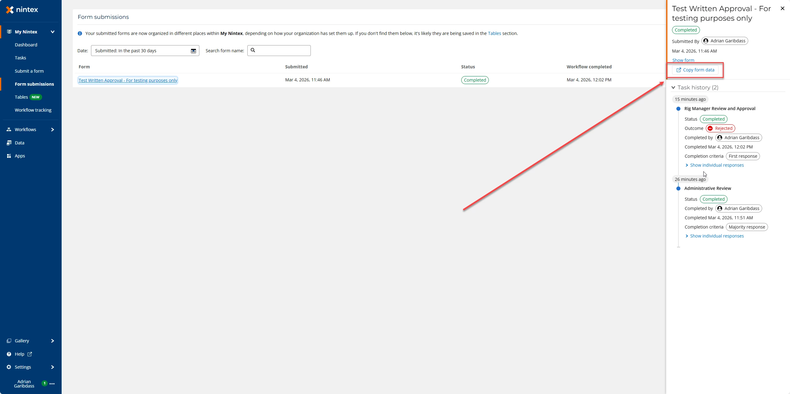 Is there any functionality to disable the ‘Copy Form Data’ option in Nintex Automate.