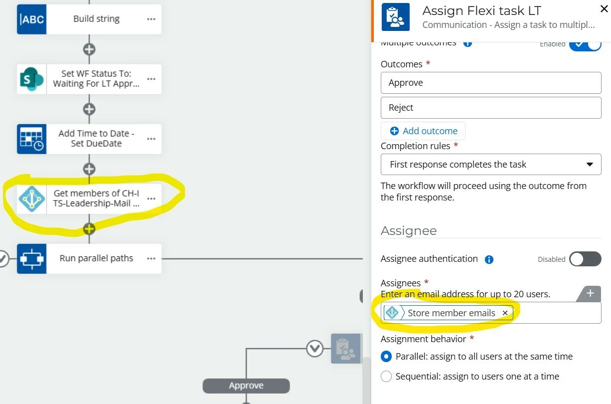 - In “Assign a task to multiple users” set the Assignee to the “Stored Member emails” from step 2