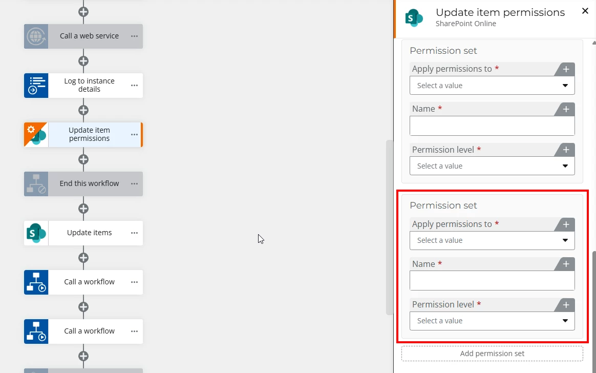 It works quite good. But is there a bug with the nintex designer because when trying to modify the action within the nintex designer it is not possible for me to remove a permission set?