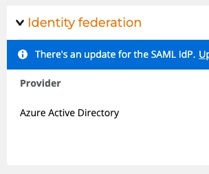 SAML federated customers will need to perform a simple upgrade by changing some values in their Identity Provider. If you need to upgrade you will see a banner on your User Management page under settings: