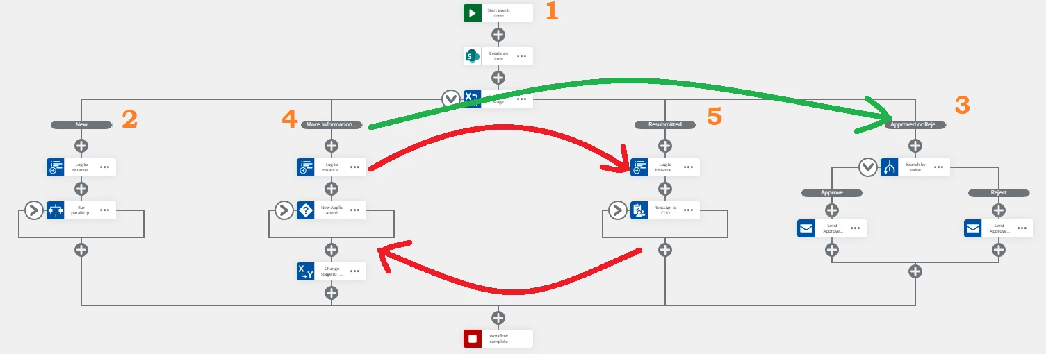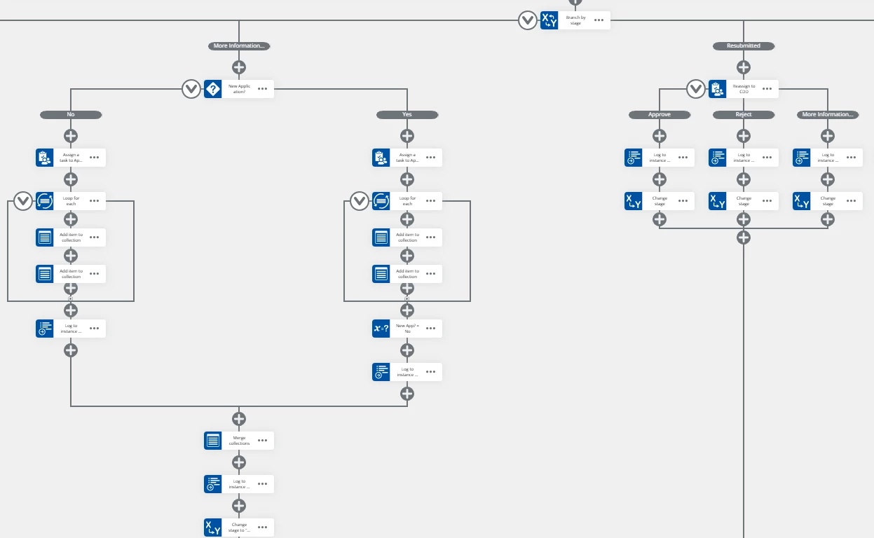 I’m having trouble setting conditional values for my repeating section in the “More information” stage. I cant set the “Default number of rows” to a specific Task Form because values could be coming from either “Assign Task to Reviewers” or “Reassign Task to Reviewers.”