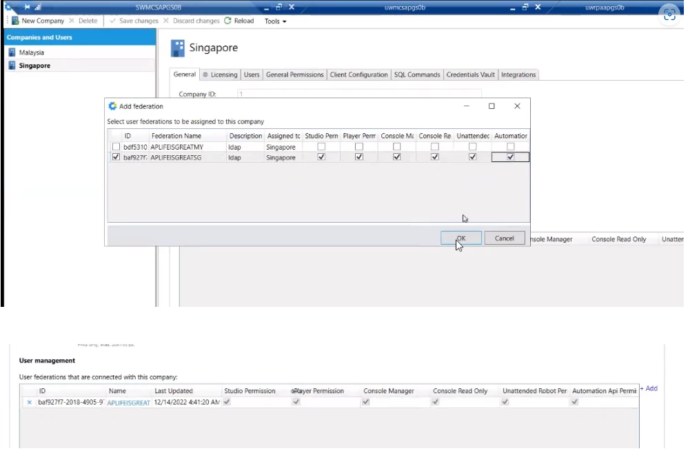5. Post and add federation respectively for each tenant under Nintex Admin: