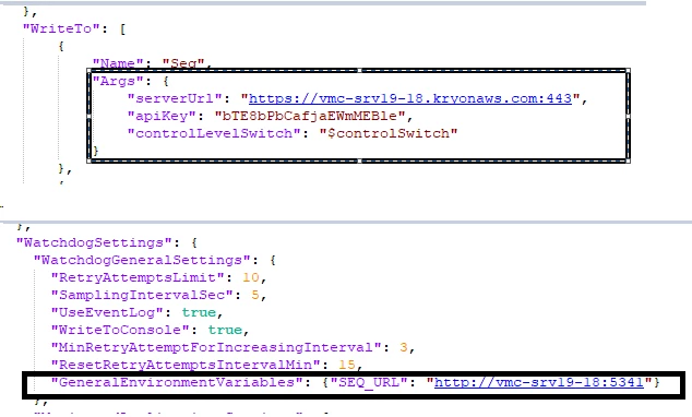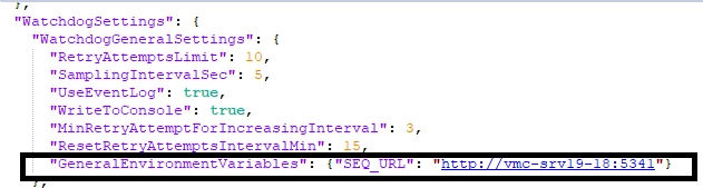 1. Edit “appsettings.Production.json” at C:\Kryon\Services\Kryon.Server.ServicesWatchdog: