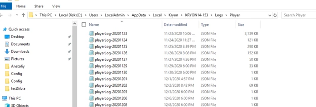 Just copy and paste in the Windows Explorer's address bar the following: %localappdata%\Kryon\<computerName>\Logs\Player