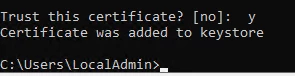 If another output is received, there is likely an error somewhere in the command, or a wrong path was used. To resolve: On the Trust this Certificate, enter y and press Enter. This output should be received:After successfully importing the certificate to the Java Keystore, restart all Nintex Services. Re-attempt to finish the LDAPS Federation Settings.