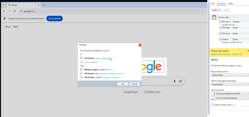 For example, you can create rules to target certain domains like google.com. Clicking “Create a Rule” enables the configuration of rules that apply to all future wizards