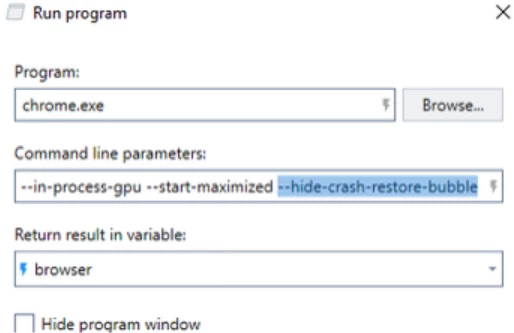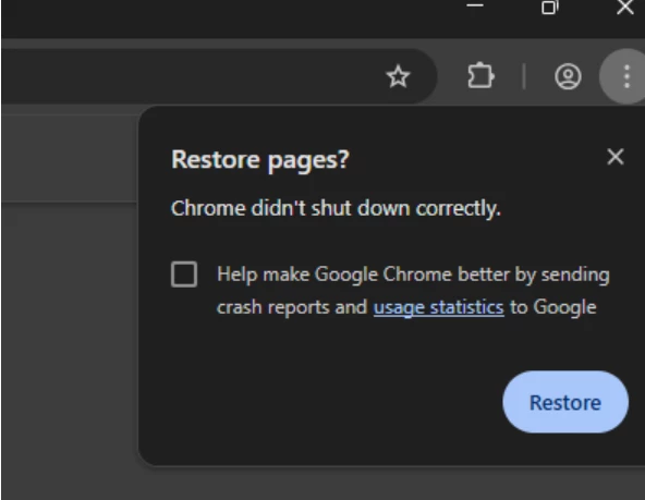 When the next task is triggered, the Chrome session may have the Restore Page? popup.