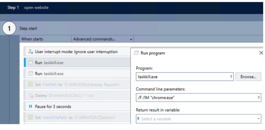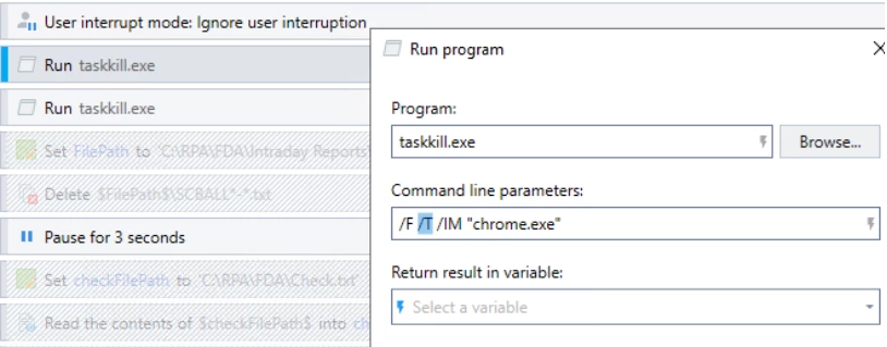 The wizard has Run Program command to kill Chrome at the beginning of wizard.
