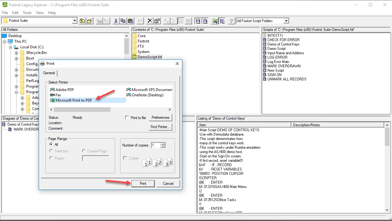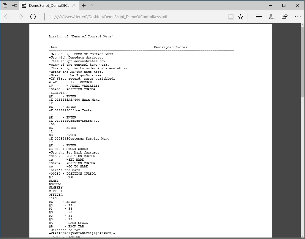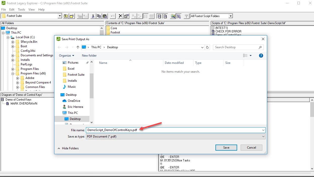 7) Give the destination PDF file an appropriate filename. I would recommend it start with the name of the original FSF file + the name of the Script (ie Task) being printed.Ex: DemoScript_DemoOfControlKeys.pdf