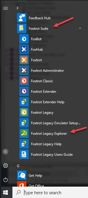 - Start 'Foxtrot Legacy Explorer' from the Windows Start Menu > 'Foxtrot Suite' folder.
