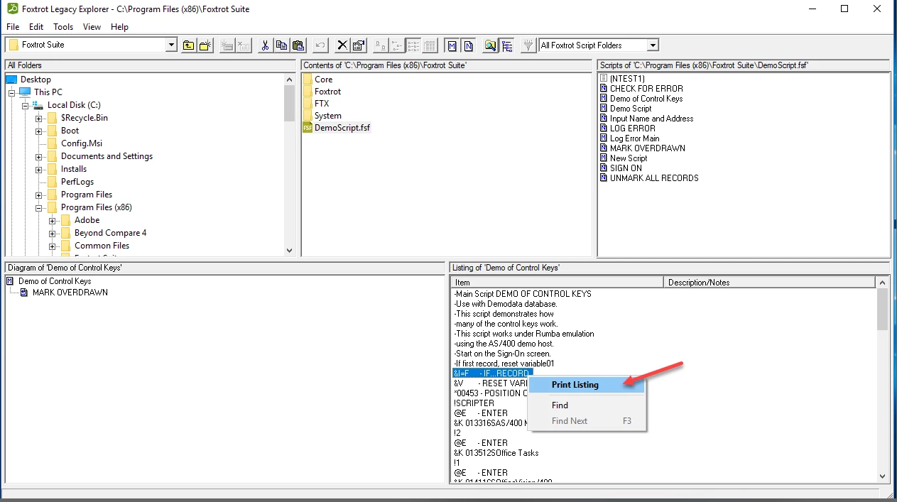 5) Right click anywhere in the lower-right pane and select 'Print Listing' from the context popup menu.