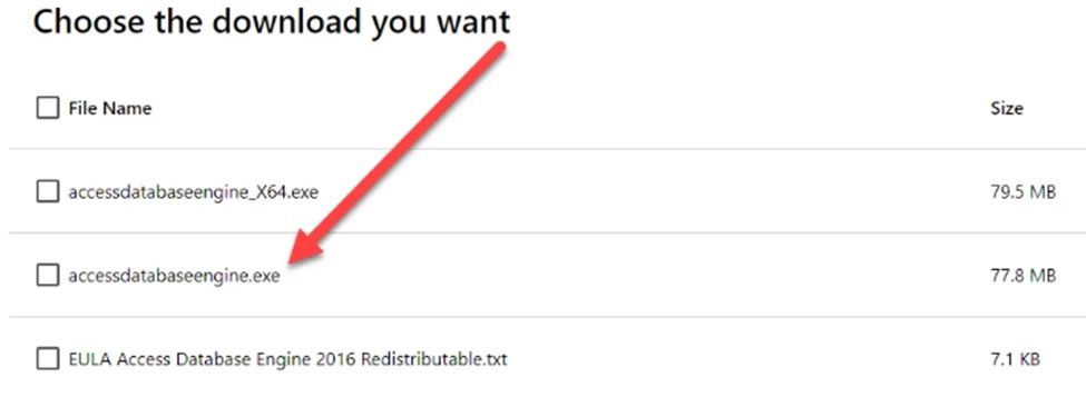 To resolve this, you have to install the 32-bit MS Access DB engine. When downloading from the Microsoft website (https://www.microsoft.com/en-us/download/details.aspx?id=54920), the site may auto-detect your machine as 64-bit and prevent downloading the required 32-bit version: