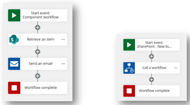 Component workflows are usually paired with a main workflow that calls or starts the component workflow.