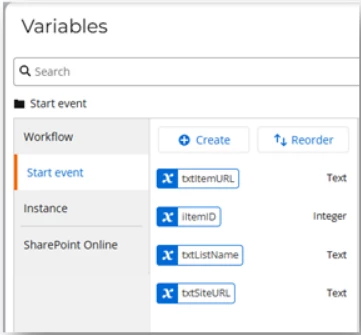 When configuring actions in Nintex Workflow start events, we do not have access to the same start variables that we usually have with a SharePoint online start event.