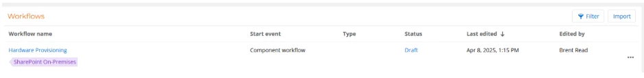 After clicking to upgrade the workflow, a draft version should be created and be ready for remediation in the Nintex tenant. Workflows imported from SharePoint On Prem will be tagged with the SharePoint On Premises tag to indicate where they originated.