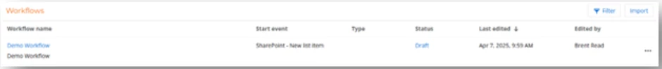 After a short time, you should see a draft created in Nintex Workflow Cloud and the workflow will be ready for remediation. If you reload the classic app in O365 you should also see an Upgrade status of Draft Created in Nintex Workflow. Clicking this status will take you directly to the workflow in the Nintex tenant.