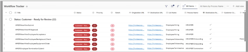 Below are the fields/columns we set up on the Workflow Tracker list to ensure all team members have visibility on the defined delivery scope, workflow status, priority, batch/wave, ownership, comments, etc. These are the fields/columns we use on a regular basis across all our migration projects. We recommend setting up something similar, and adding or removing any fields necessary for your project.