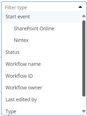 To refine your search further, you can combine multiple filters. For instance, filter by Status to see “Draft” workflows, and then use the Type filter to narrow down the results to those created by a particular user.