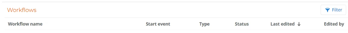 Filters make it easier for you to track and manage workflows at different stages of development or execution. By filtering based on status, owner, or type, you can easily monitor active workflows, review completed ones, or identify those that need attention. This ensures that no important workflows are missed.